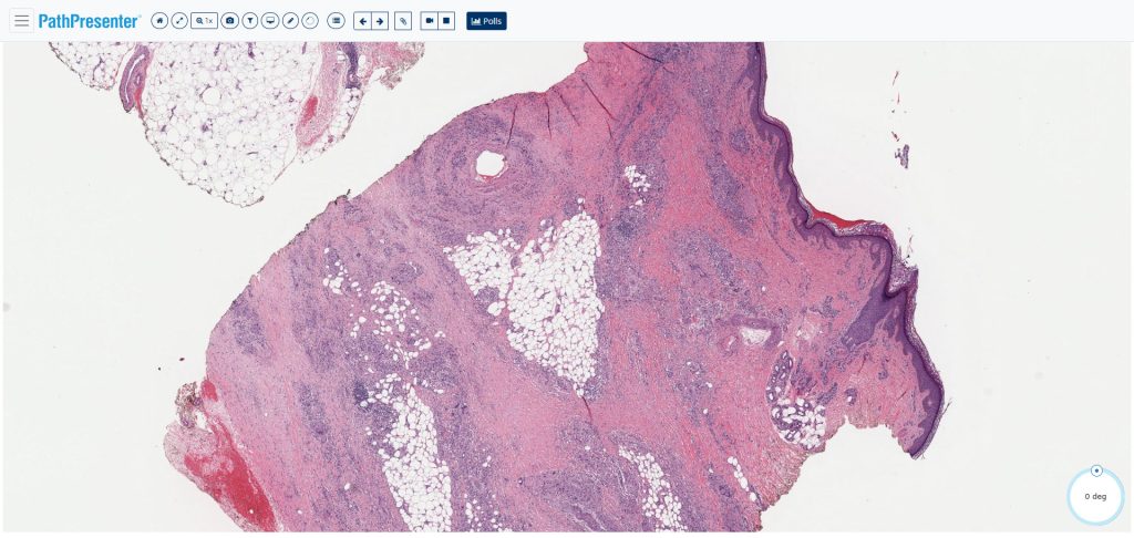 Test yourself with this gold-standard dermatopathology case, curated by leading specialists with decades of experience (including our own Rajendra Singh MD). Check the history, scrutinize the interactive WSI with our viewer, and make your diagnosis. Can you get it? Good luck!